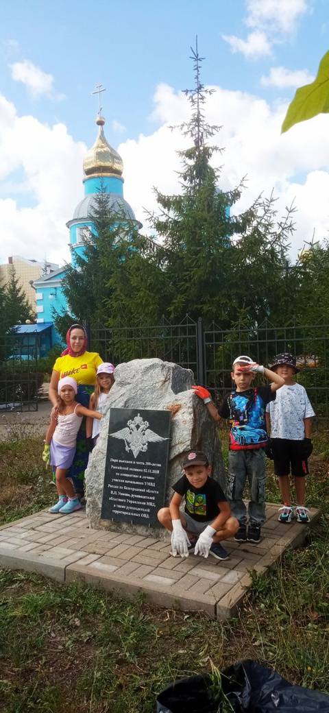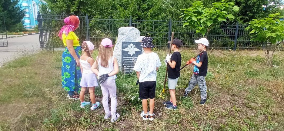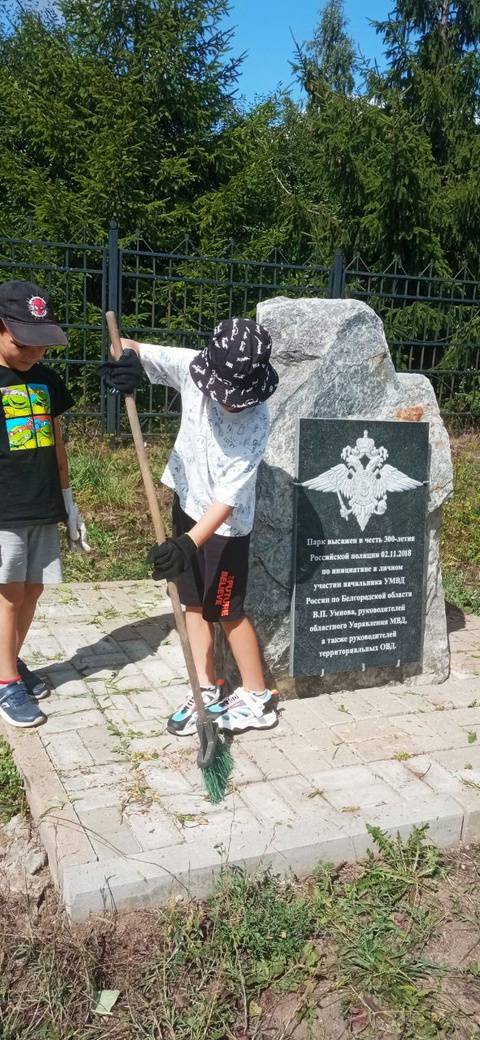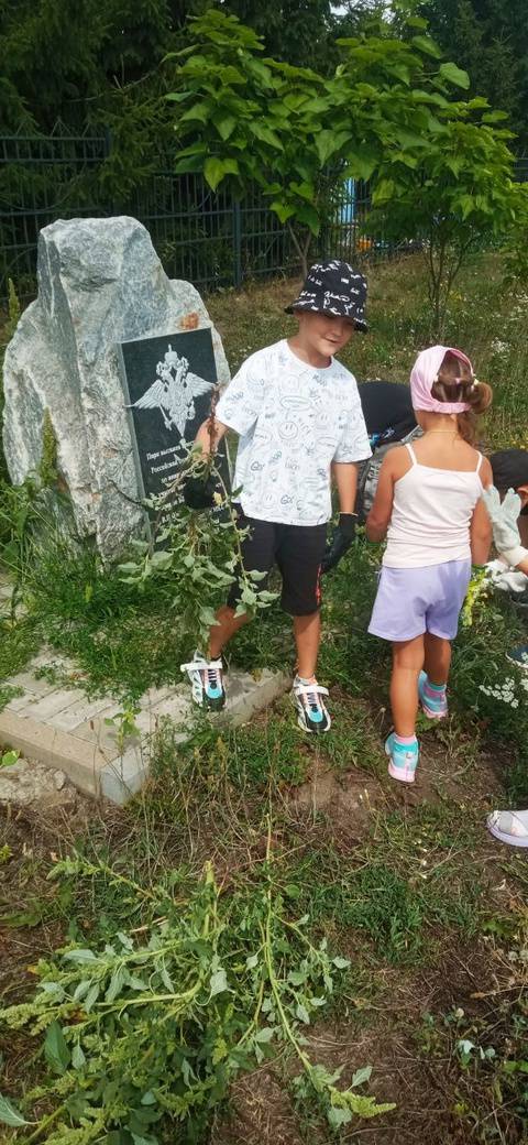 Воспитанникам захотелось вложить свой посильный вклад в облагораживании территории, ведь забота об общественных местах и памятниках это очень важно. Все вместе, решили навести порядок: убрать траву, подмести плитку.