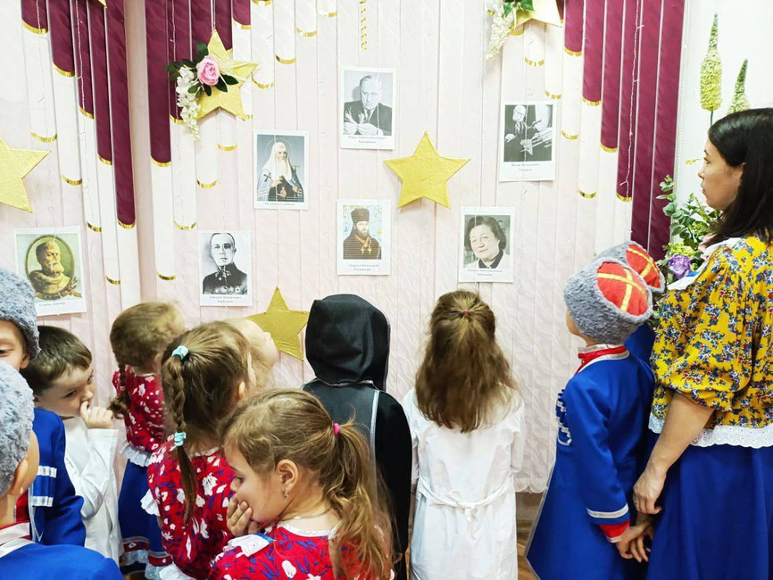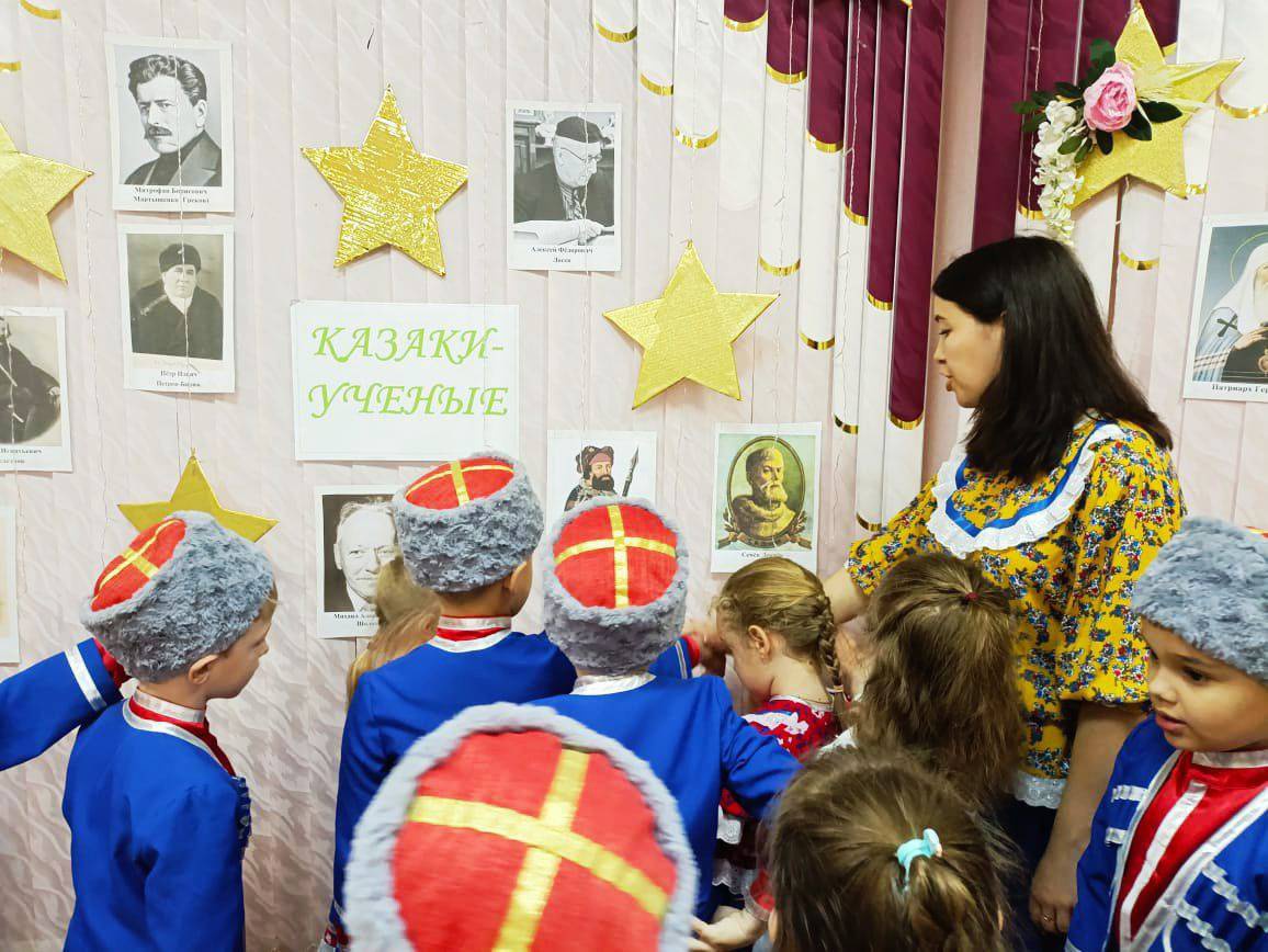 Воспитанники вместе с родителями подготовили образ и рассказ об одном из известных казачьих деятелей. Перед ребятами предстали: Зинаида Виссарионовна Ермольева - советский микробиолог и эпидемиолог, действительный член Академии медицинских наук СССР, создательница пенициллина в СССР; Патриарх Гермоген — патриарх Московский и всея Руси (1606—1611, известный церковный общественный деятель эпохи Смутного времени; Павел Пантелеймонович Лукъяненко -российский учёный-селекционер, академик АН СССР, академик и вице-президент Всесоюзной академии сельскохозяйственных наук имени В. И. Ленина, дважды Герой Социалистического Труда.