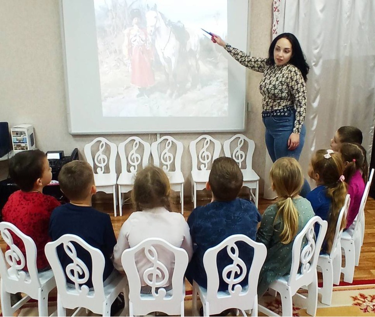 На занятии дети рассматривали картины известных художников, посвященные казакам. Они внимательно изучали каждую деталь, погружаясь в мир давно ушедших времен и героических подвигов казачьего народа. Эти произведения искусства вдохновили маленьких художников на творчество и собственные творческие эксперименты.