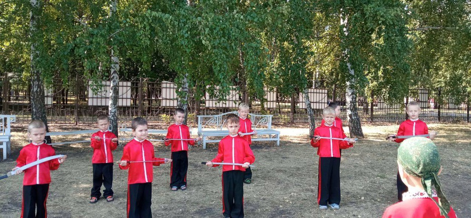 Воспитанники нашего детского сада приняли участие в казачьих забавах, приуроченных к празднику «Яблочный Спас», который почитают казаки.