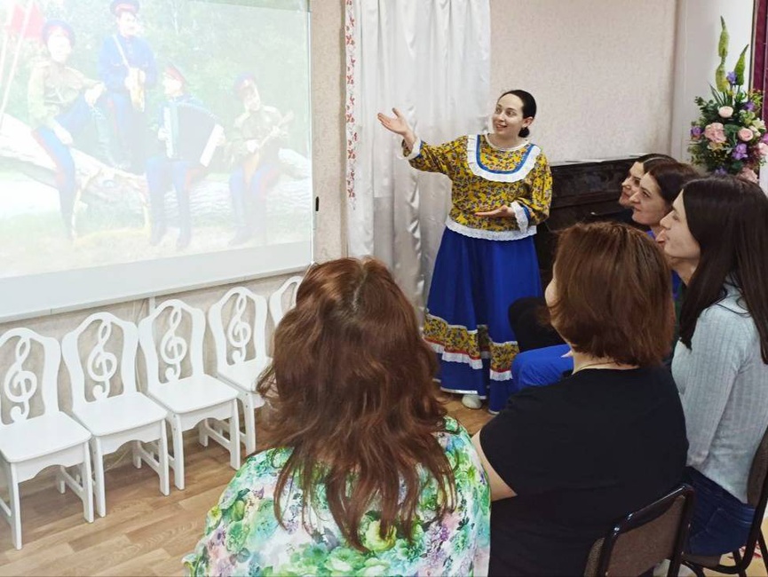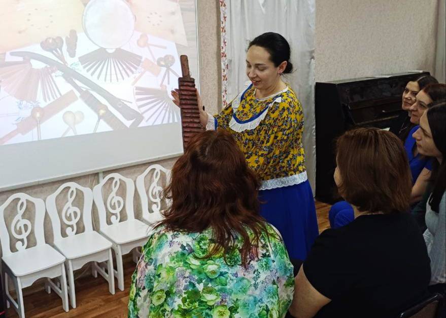 Педагоги познакомились с различными музыкальными инструментами, которые использовали представители казачьей культуры. Так же для участников мастер - класса были представлены аутентичные казачьи песни, пронизанные патриотическим духом.