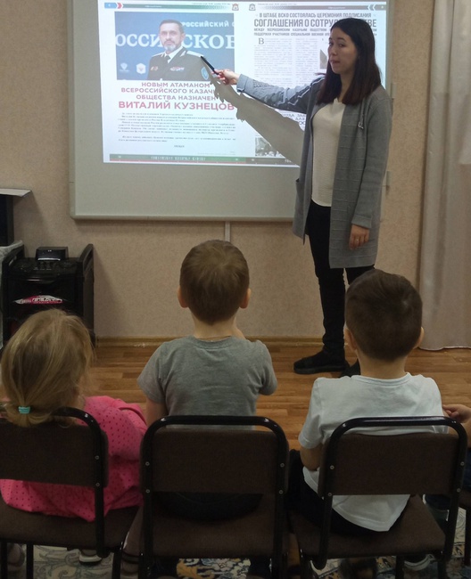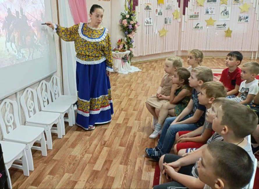 В нашем детском саду для воспитанников старшего дошкольного возраста сегодня прошло тематическое занятие «Атаман Всероссийского казачьего общества».