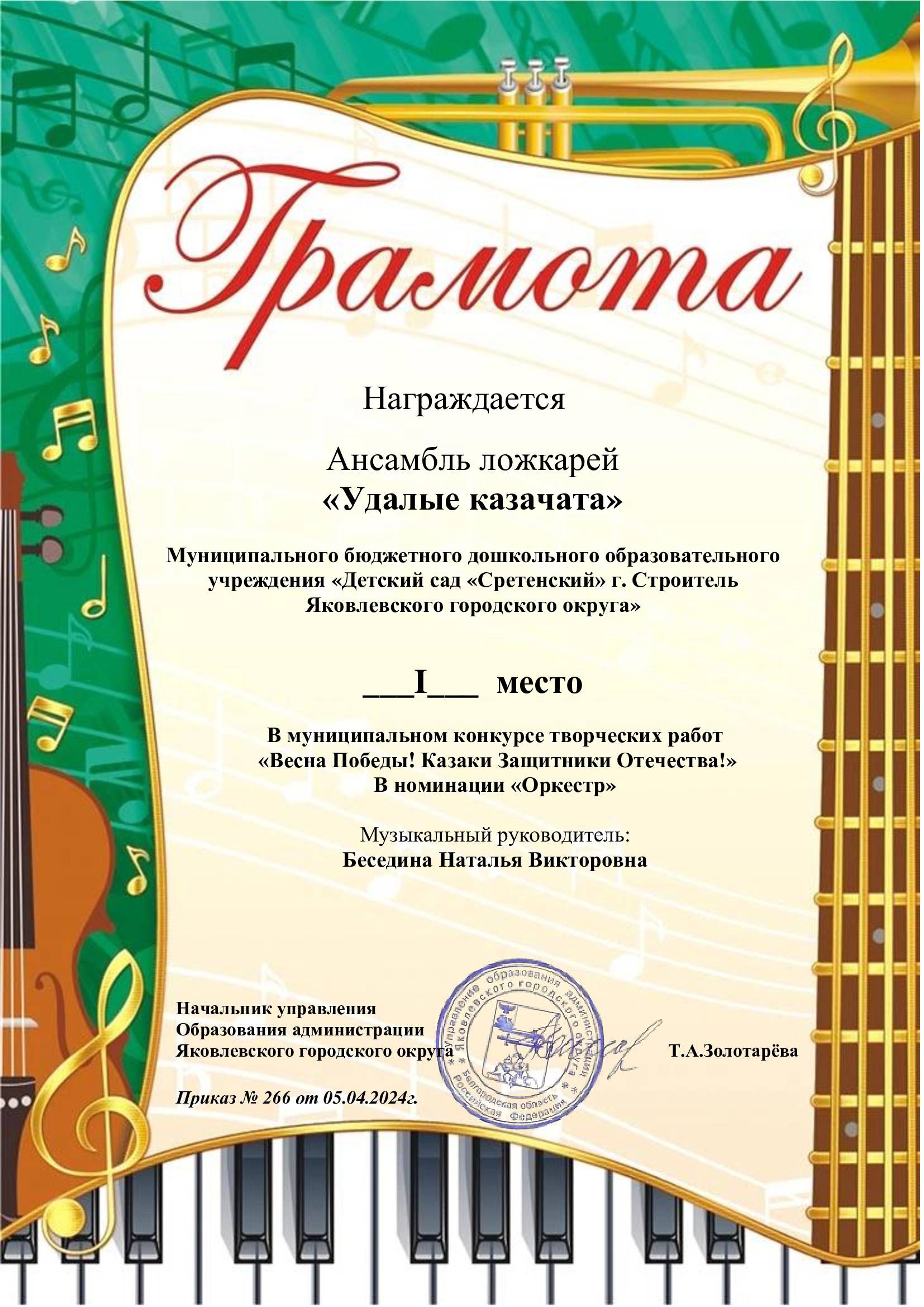 Пусть этот опыт станет для наших детей ярким воспоминанием и стимулом к новым творческим свершениям. Пусть звуки их музыки наполняют наши сердца радостью и гордостью!