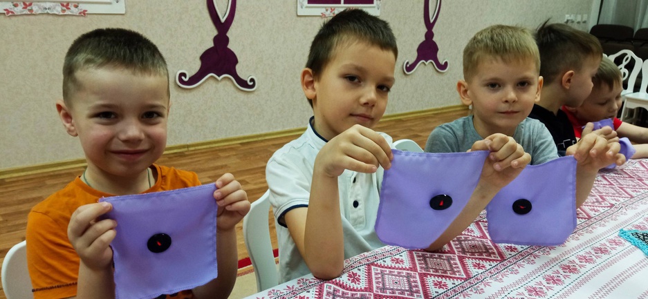 Мальчишки тоже не остались в стороне и, как настоящие казаки, отважно пришивали пуговицы к своей одежде, демонстрируя свое мастерство и старательность.