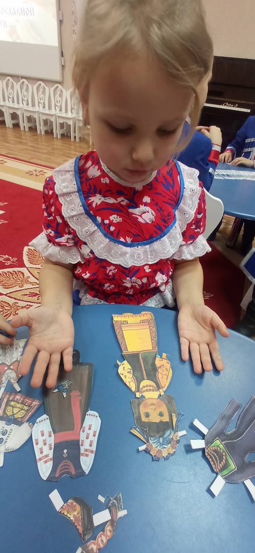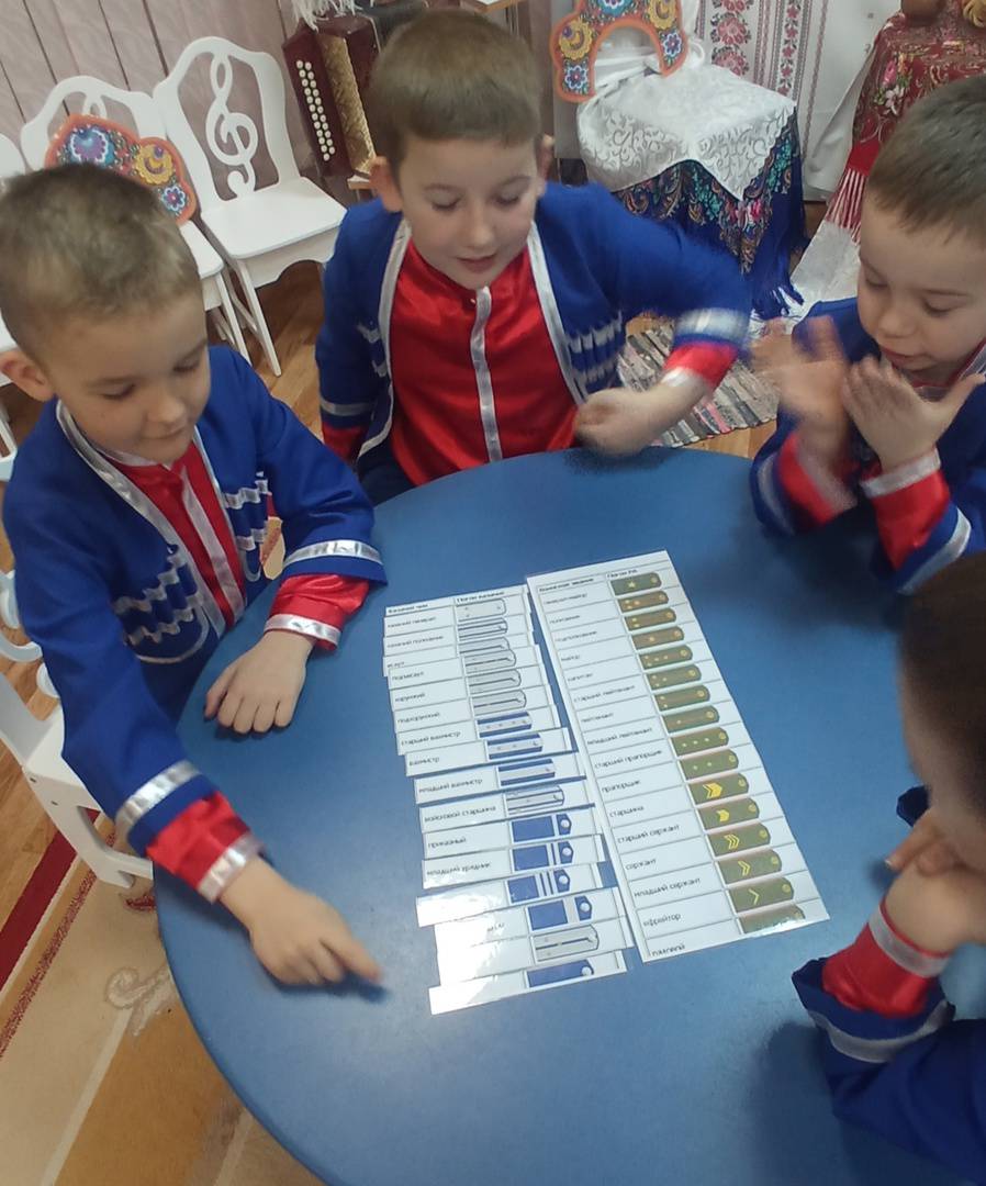 Мальчишки соревновались в расстановке казачьих чинов в правильном порядке, а девочки с удовольствием подбирали казачью одежду для кукол. Казачья папаха использовалась для того, чтобы дети вспомнили и повторили казачьи заповеди. А затем ребята собирали пазл «обед казака в походе».